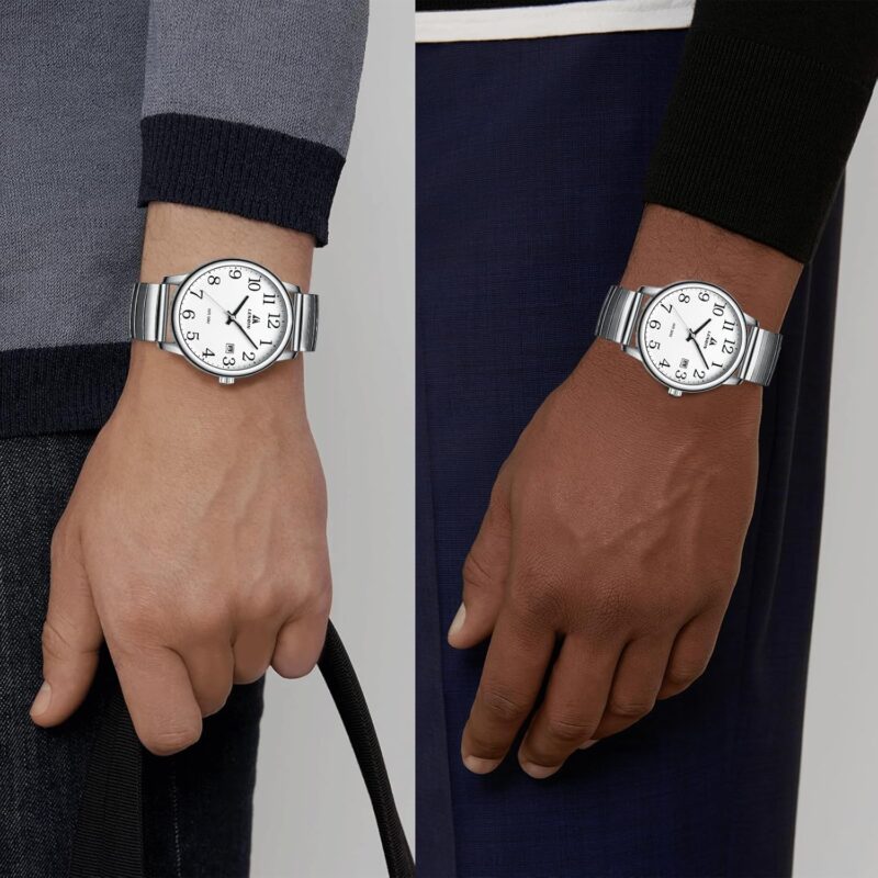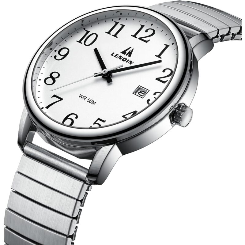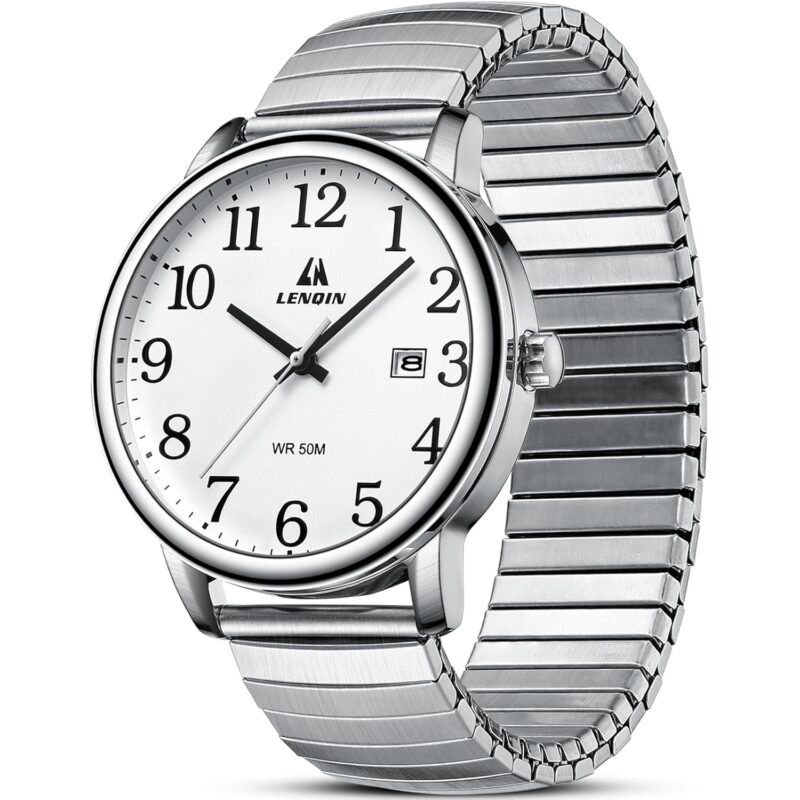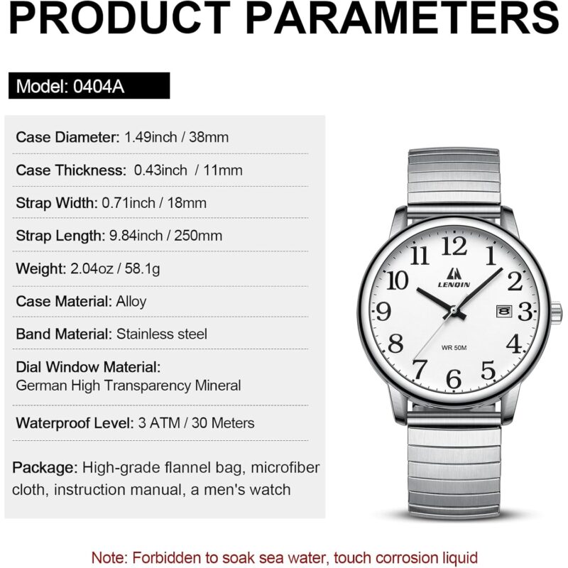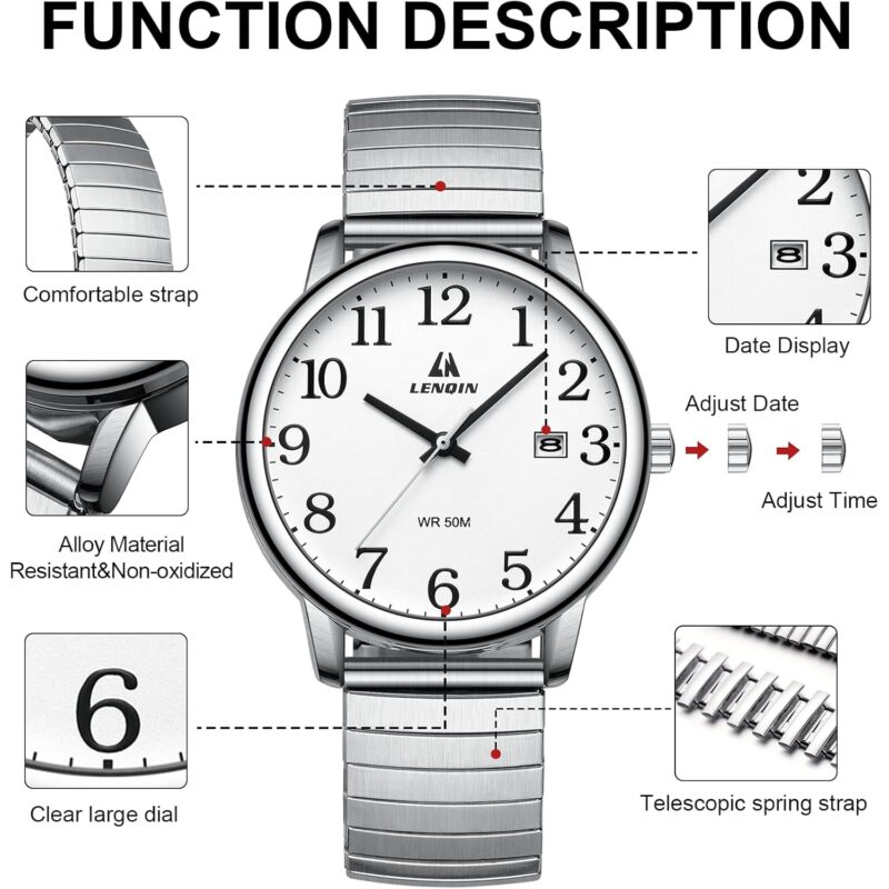 - ăEasy-to-Read White Dial with Full Arabic NumeralsăâOur mens wrist watches with a dial features large, easy-to-read numbers and hands, also withe date and day function, making it easy to read at a glance.