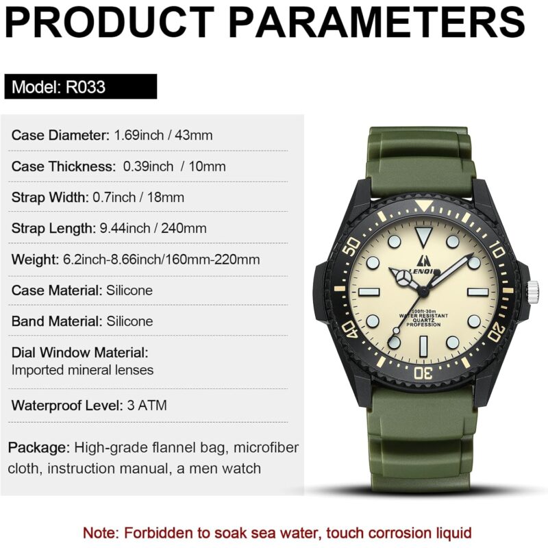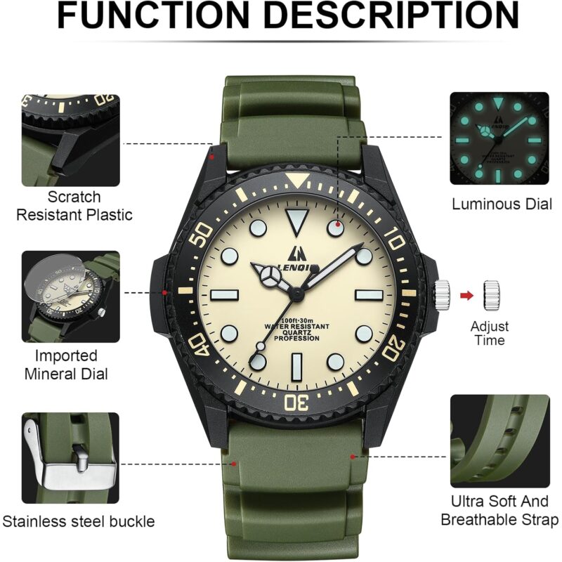 • ⌚ Mens Waterproof Watch: With 3ATM waterproof rating, daily hand washing, sweat, rain and splash-proof are no problem! But not suitable for bathing, swimming, diving. Note: Please do not press any buttons in the water, and do not touch hot water.