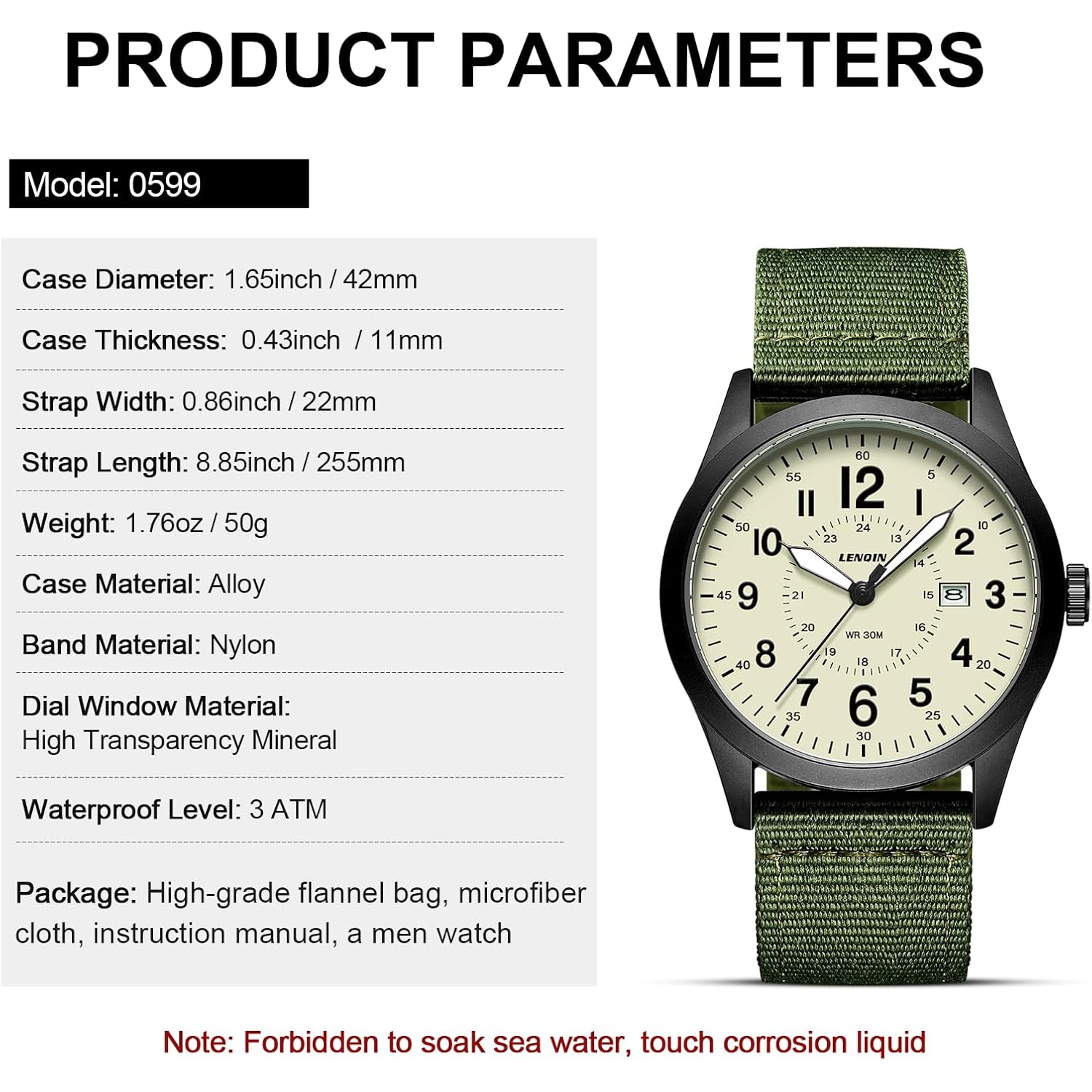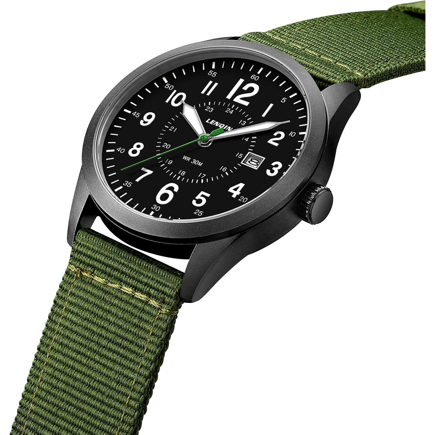 LN LENQIN Mens Watches Military Watch Sport Analog Quartz Waterproof Wrist Watch for Men with Date Luminous Army Tactical Field Casual Nylon Band