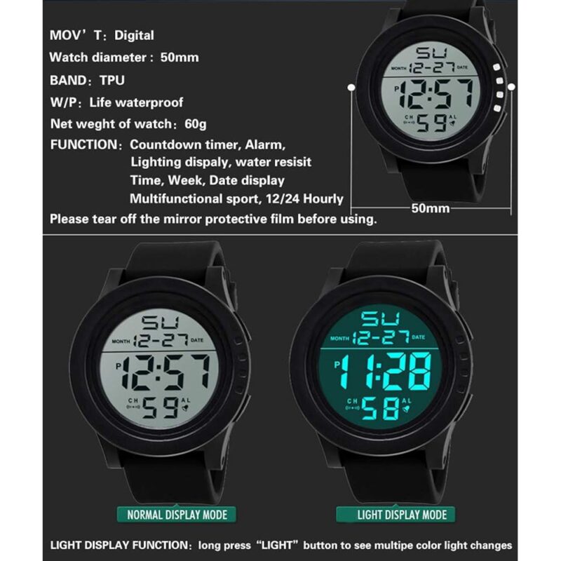 - WHAT IS IN THE PACKAGE: Mens Digital Backlight Sports Watch x 1, User Manual x 1 .This casual sports watch is a best gift choice for your beloved someone on Birthday, Christmas, Anniversary, Thanksgiving, Valentine’s Day, Mothers Day or other meaningful days.