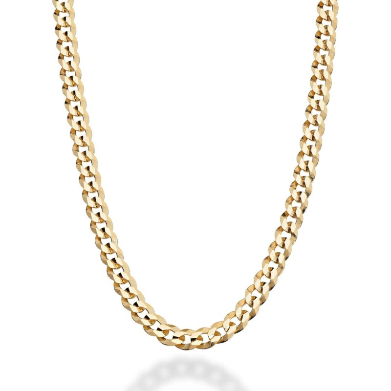 • Modern Classic: Add style to a basic look with this 18K gold plated 925 sterling silver 5mm Curb chain. Our flat diamond-cut beveled links are much more reflective than the standard curb chain for a rich, perfect shine. It is strong and durable for daily wear yet not too thick for a comfortable fit. Wear alone with casual or formal attire for everyday modern elegance, with a favorite pendant for a personal statement or as a great layering chain. Visit our store for a full selection of chains.