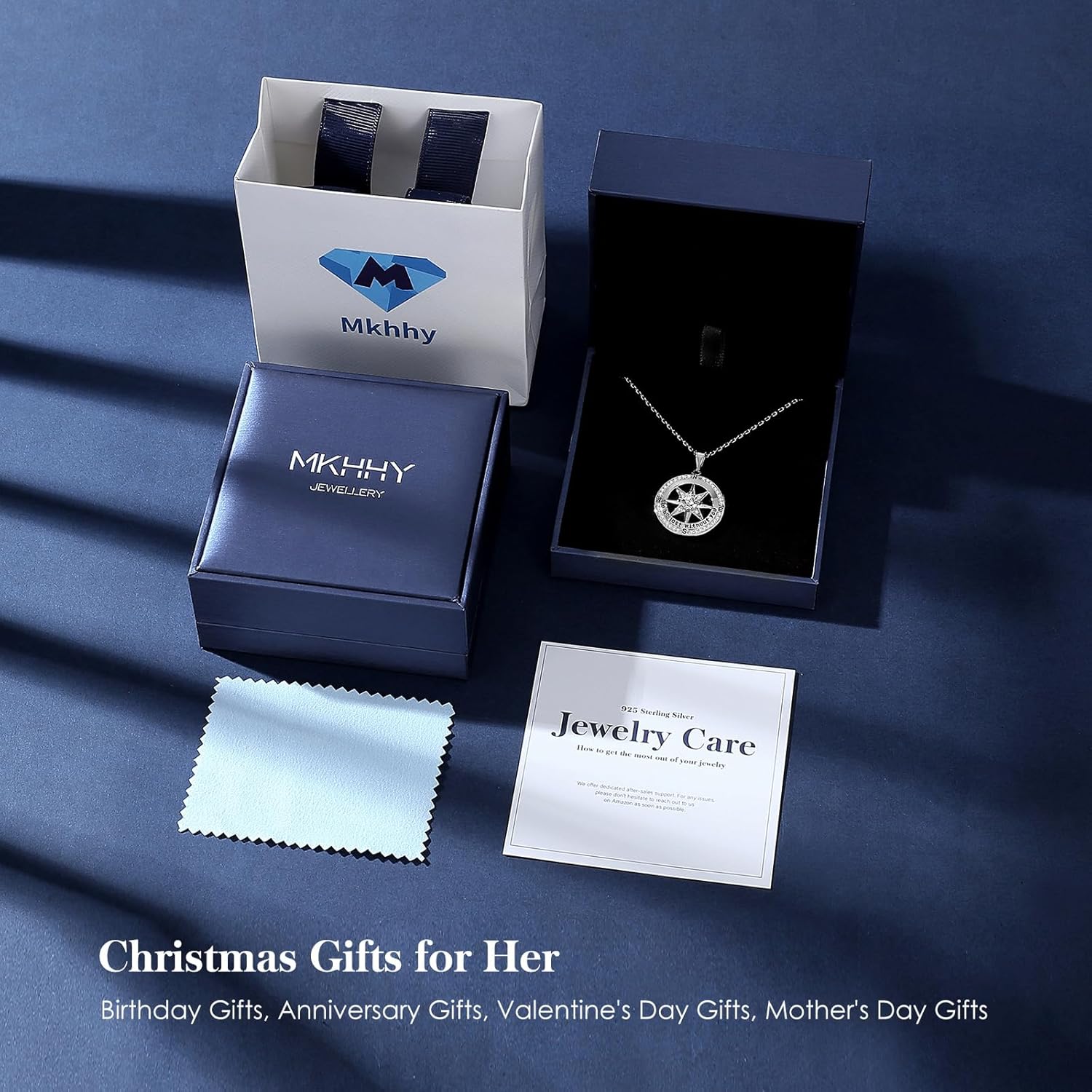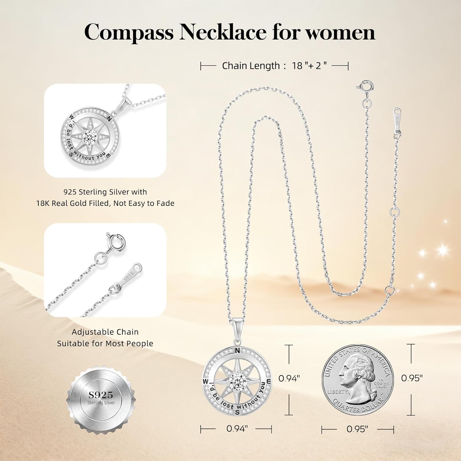 Mkhhy Compass Necklace for Women Jewelry For Her White Gold and Yellow Gold I’d Be Lost Without You(18k Real Gold Filled With S925)