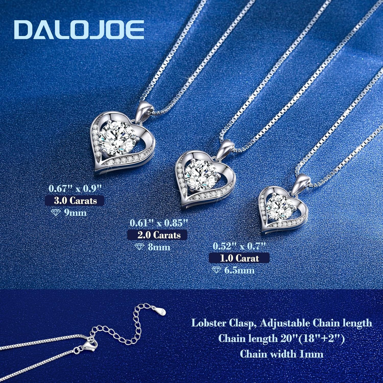Moissanite Necklace for Women, 1-3 Carat Heart Necklace Engraved with ‘I LOVE YOU’, Birthday Gift for Wife, Anniversary Present for Wife Women, Jewelry Gifts for Christmas Valentine’s Day