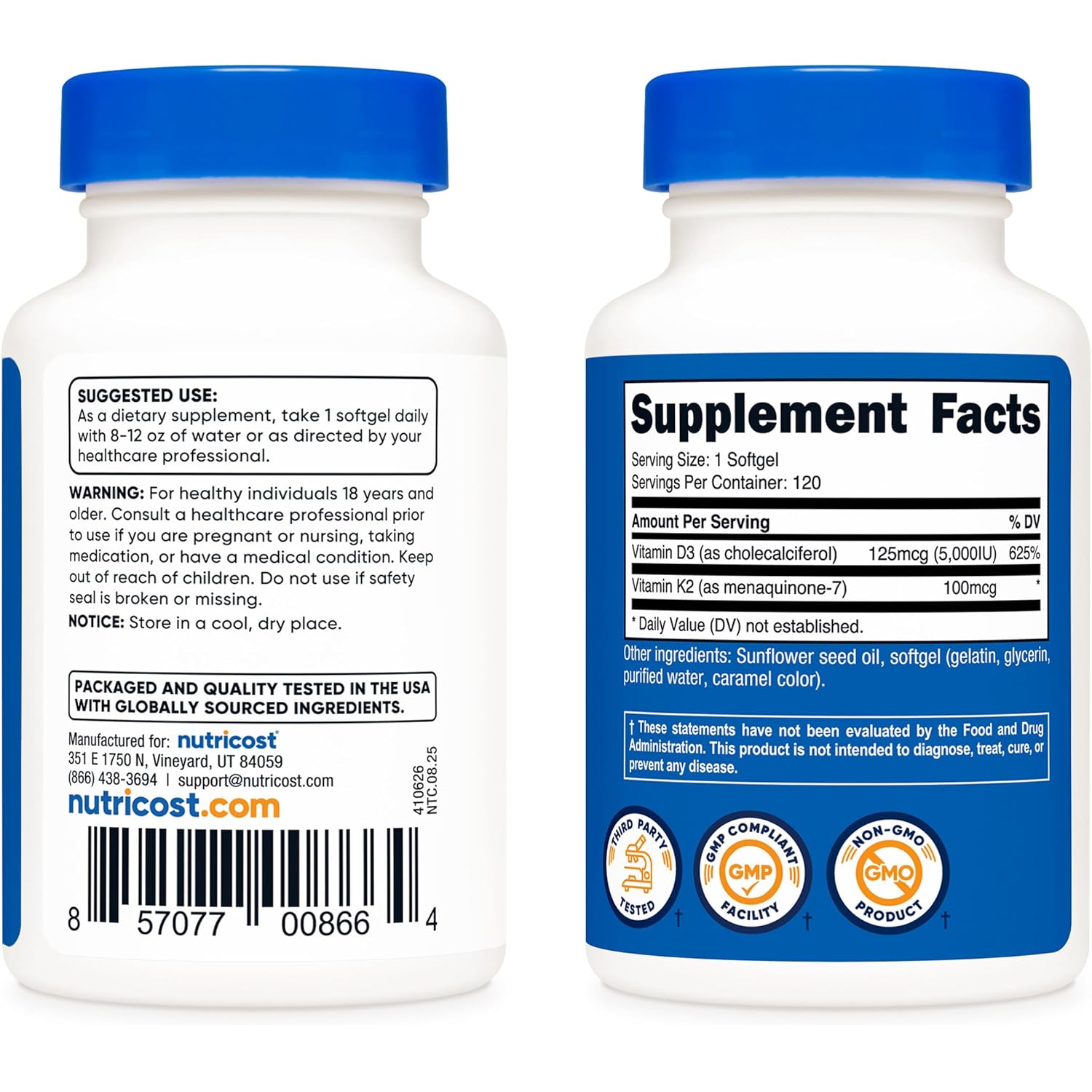 - 120 Servings of Vitamin K2 + D3 in Every Bottle