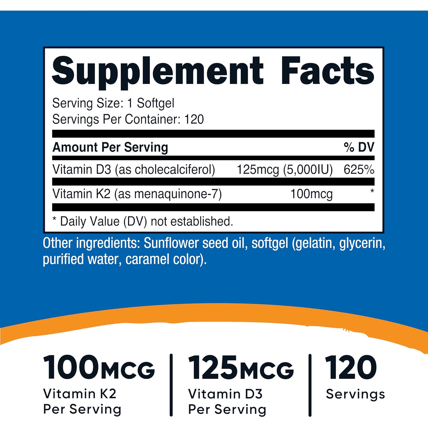 Nutricost Vitamin K2 (MK7) (100mcg) + Vitamin D3 (5000 IU) 120 Softgels – Gluten Free and Non-GMO