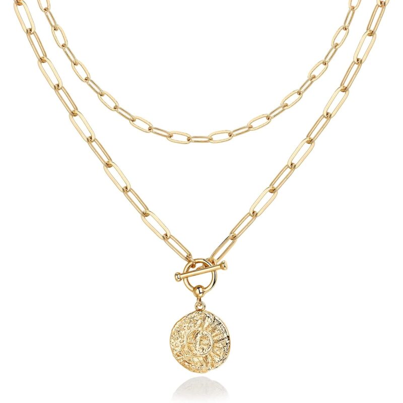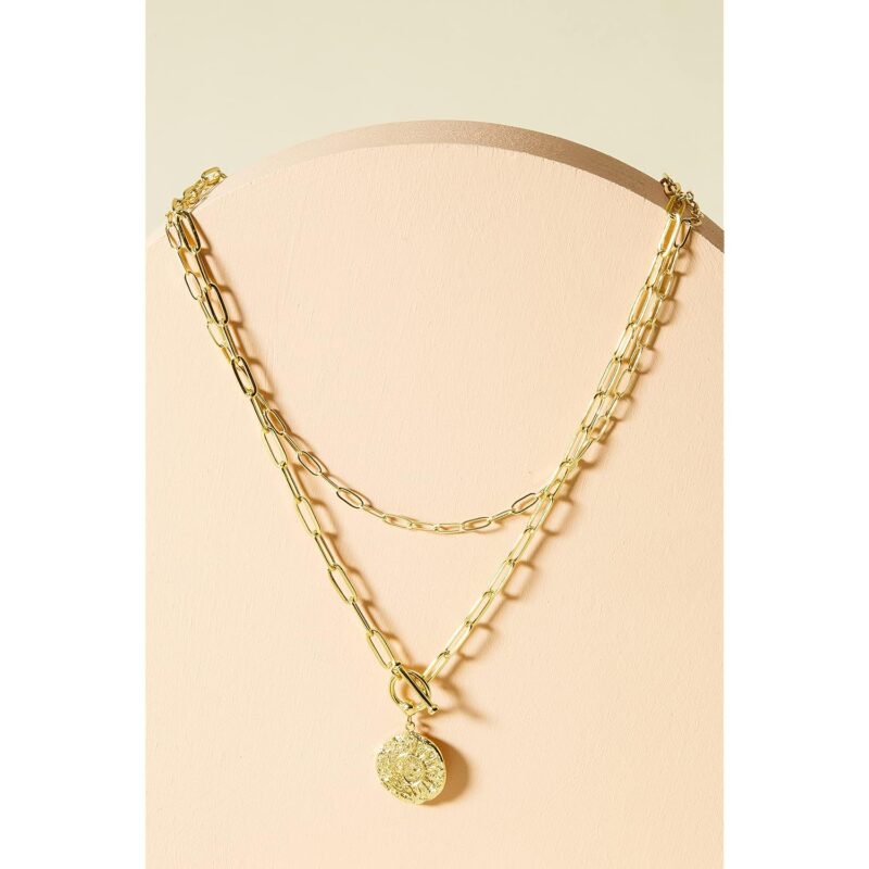 • Perfect for everyday wear, our layered necklace is a design you will love. 2 layered necklace together featuring a paper clip design layered with a coin pendant on a simple chain.