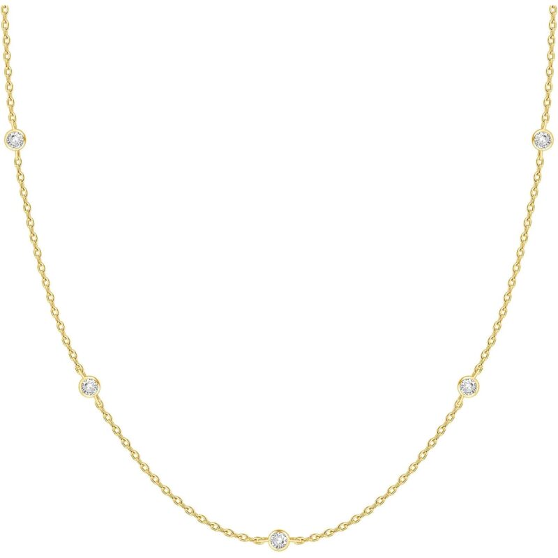 - Our 14K plated gold chain Choker Necklace features CZs bezel set in five stations on a beautiful cable chain link.