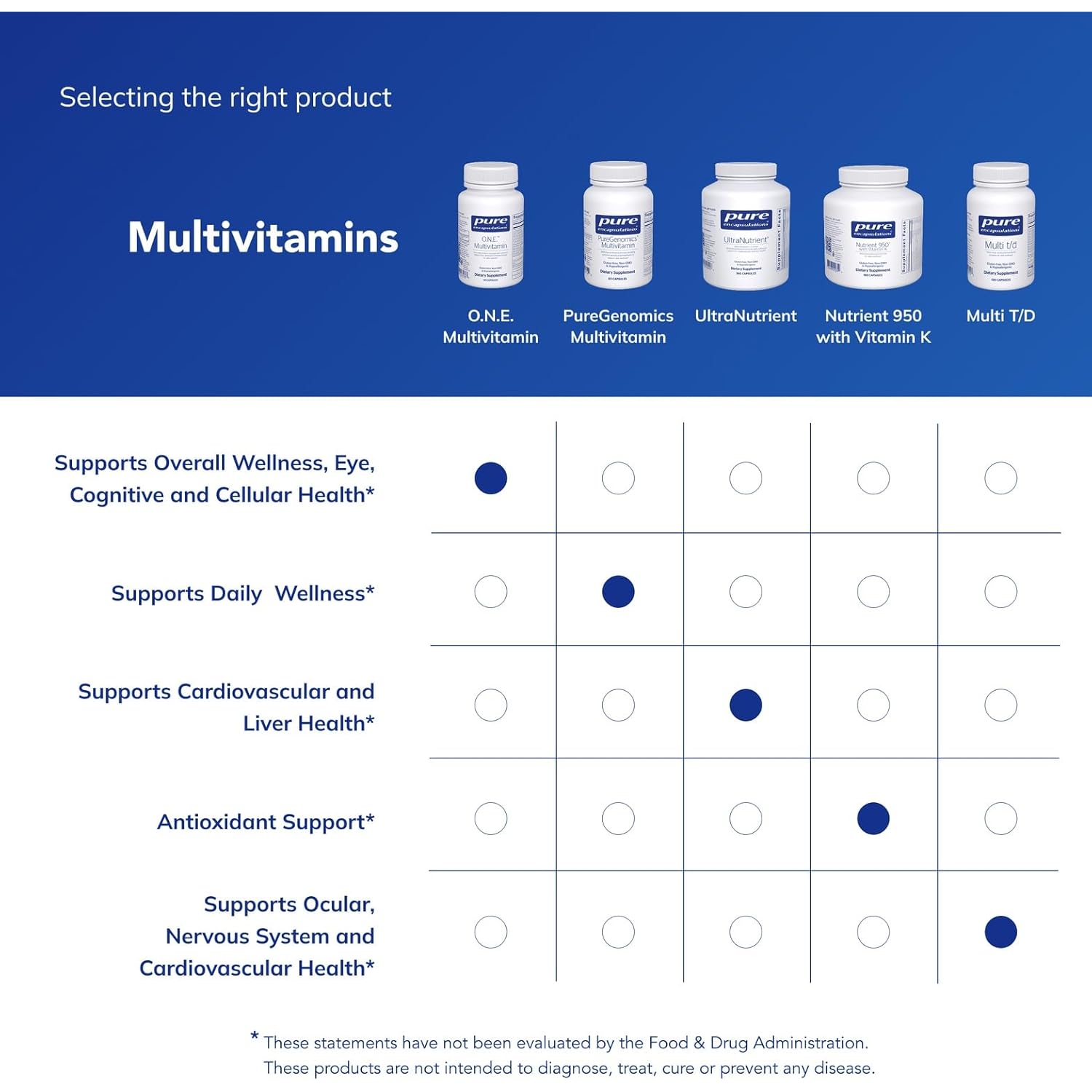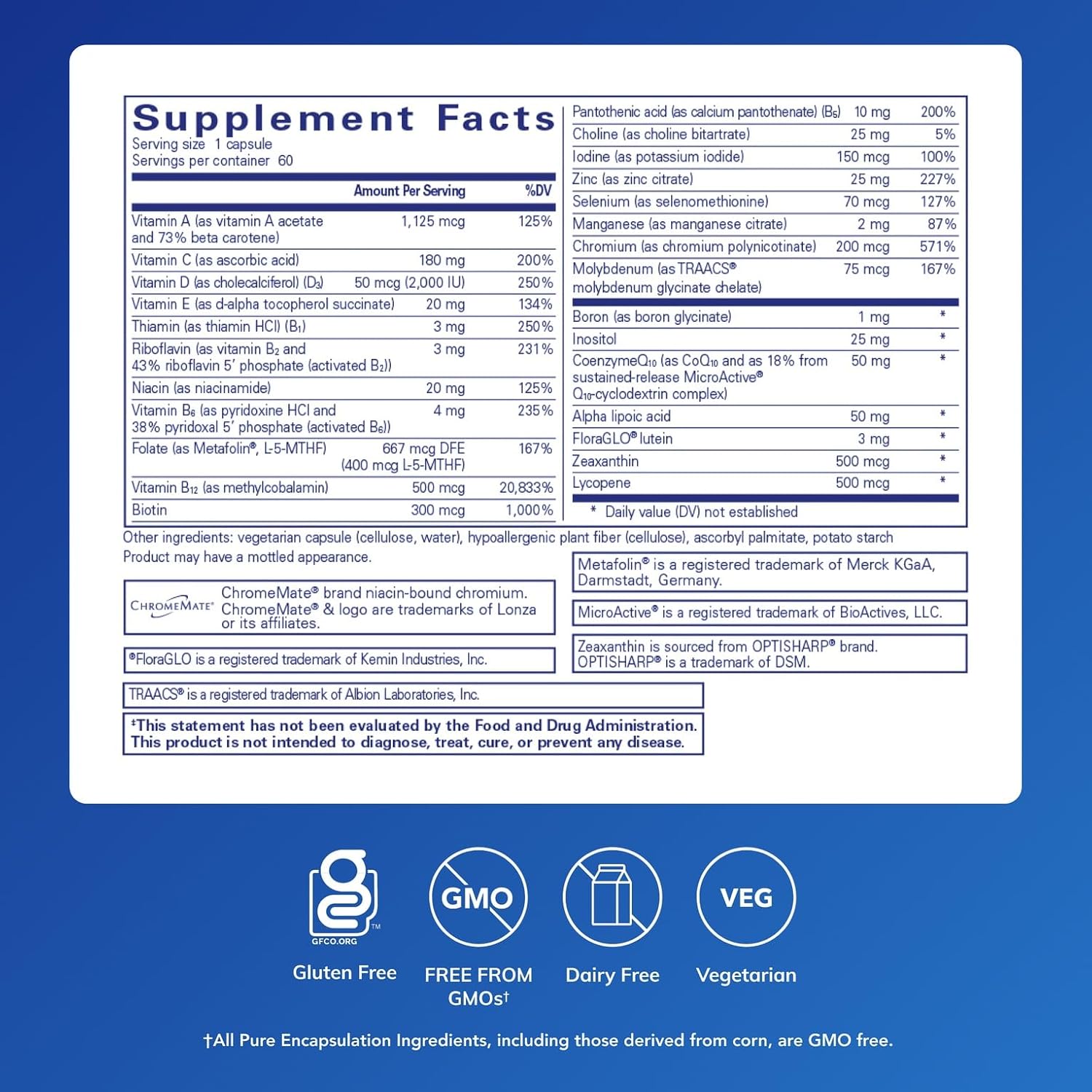 Pure Encapsulations O.N.E. Multivitamin – Once Daily Multivitamin with Antioxidant Complex Metafolin, CoQ10, and Lutein to Support Vision, Cognitive Function, and Cellular Health* – 60 Capsules