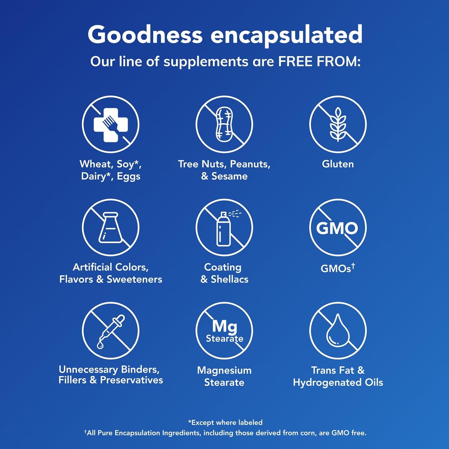 - Pure Difference: What we leave out matters, too; Pure Encapsulations products are free from common allergens, artificial or unnecessary ingredients, and GMOs