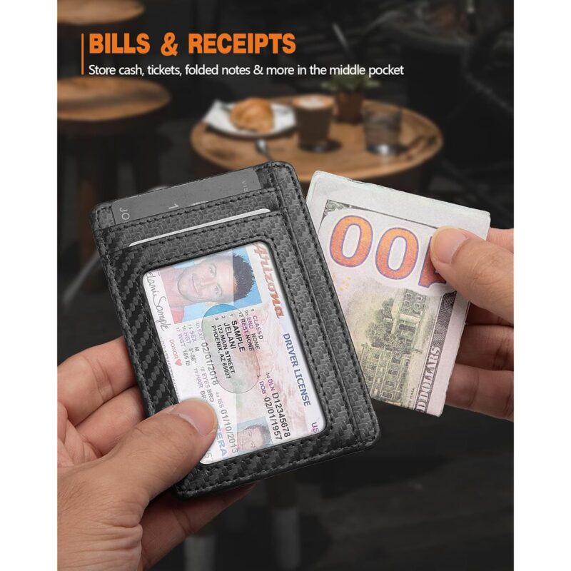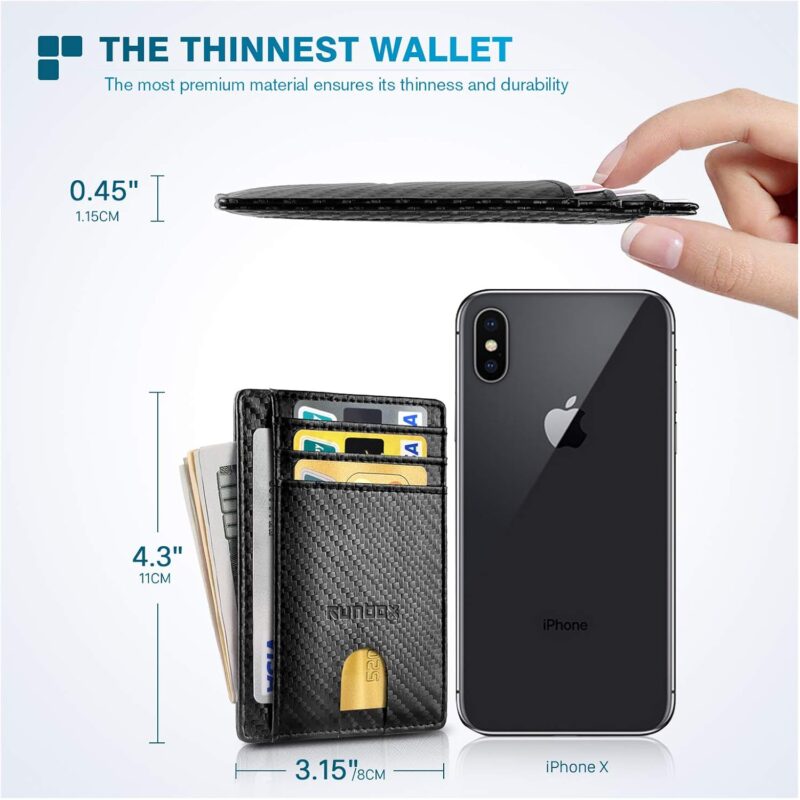 - STYLISHLY SMALL, SLIM and DISCREET: Measuring just 3 1/8″ x 4 7/16″ x 1/9″, our RFID front pocket slim wallet is super thin and modernly slim. It’s the minimalist wallet that fits perfectly in your pocket, purse or travel pack.