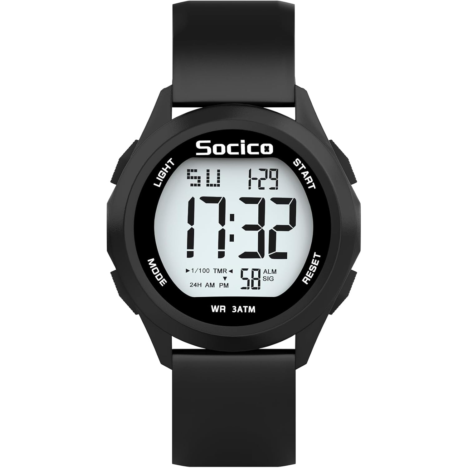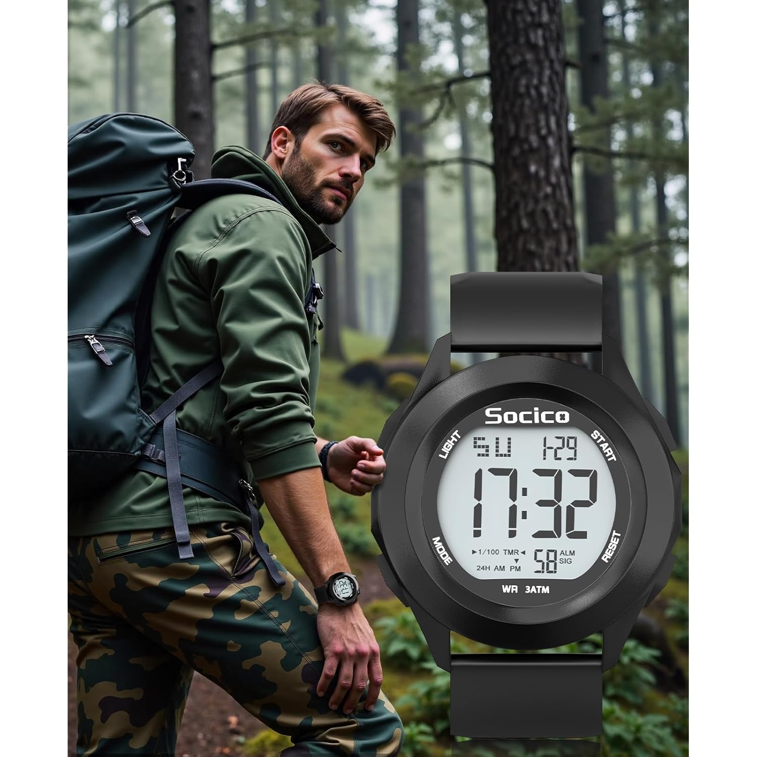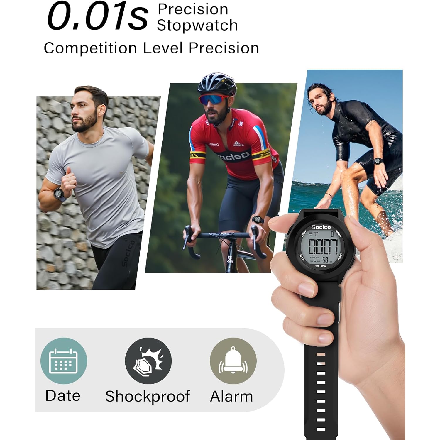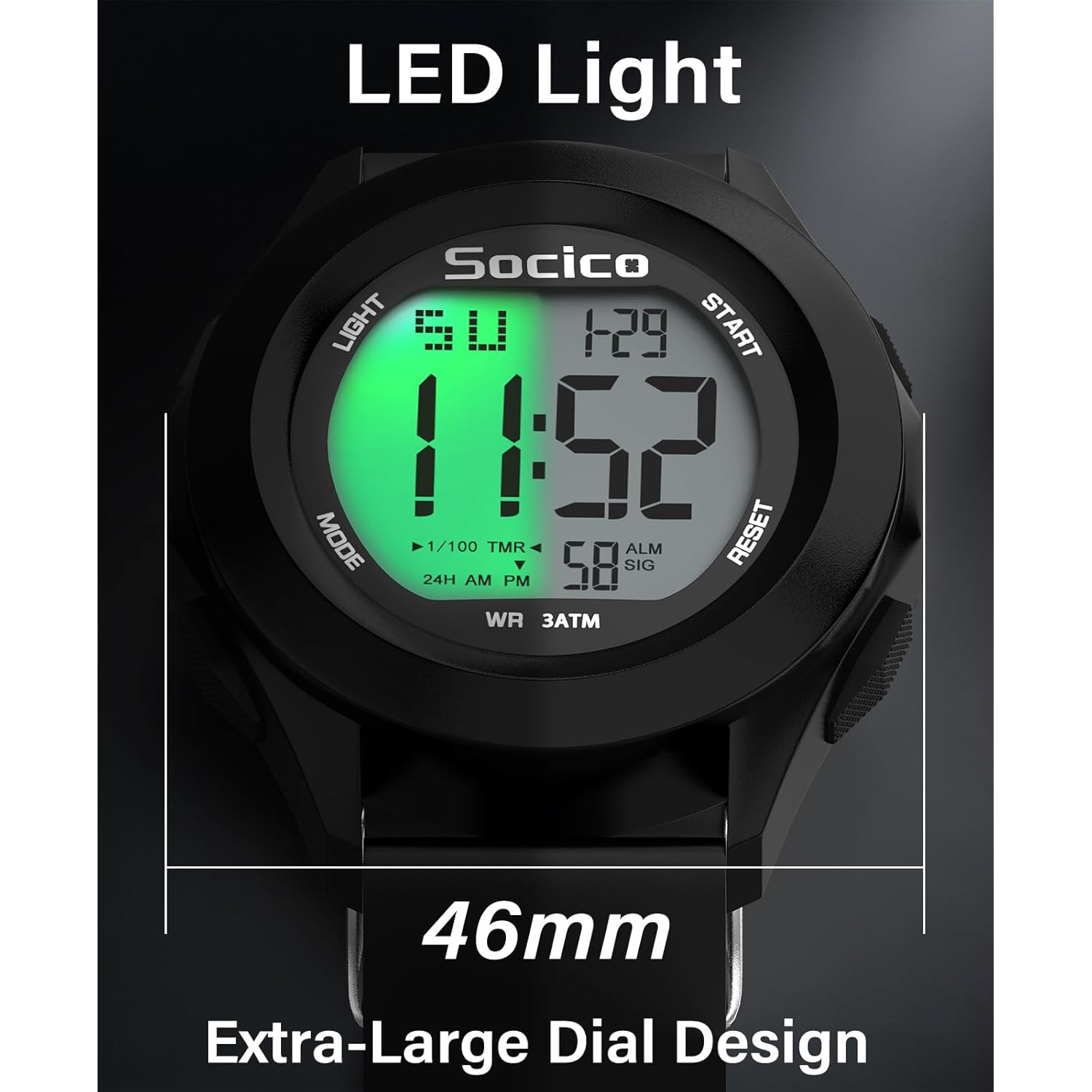SOCICO Mens Digital Watch Sports Waterproof Outdoor Large Face Military Watches with Stopwatch Back Light Alarm Date Display