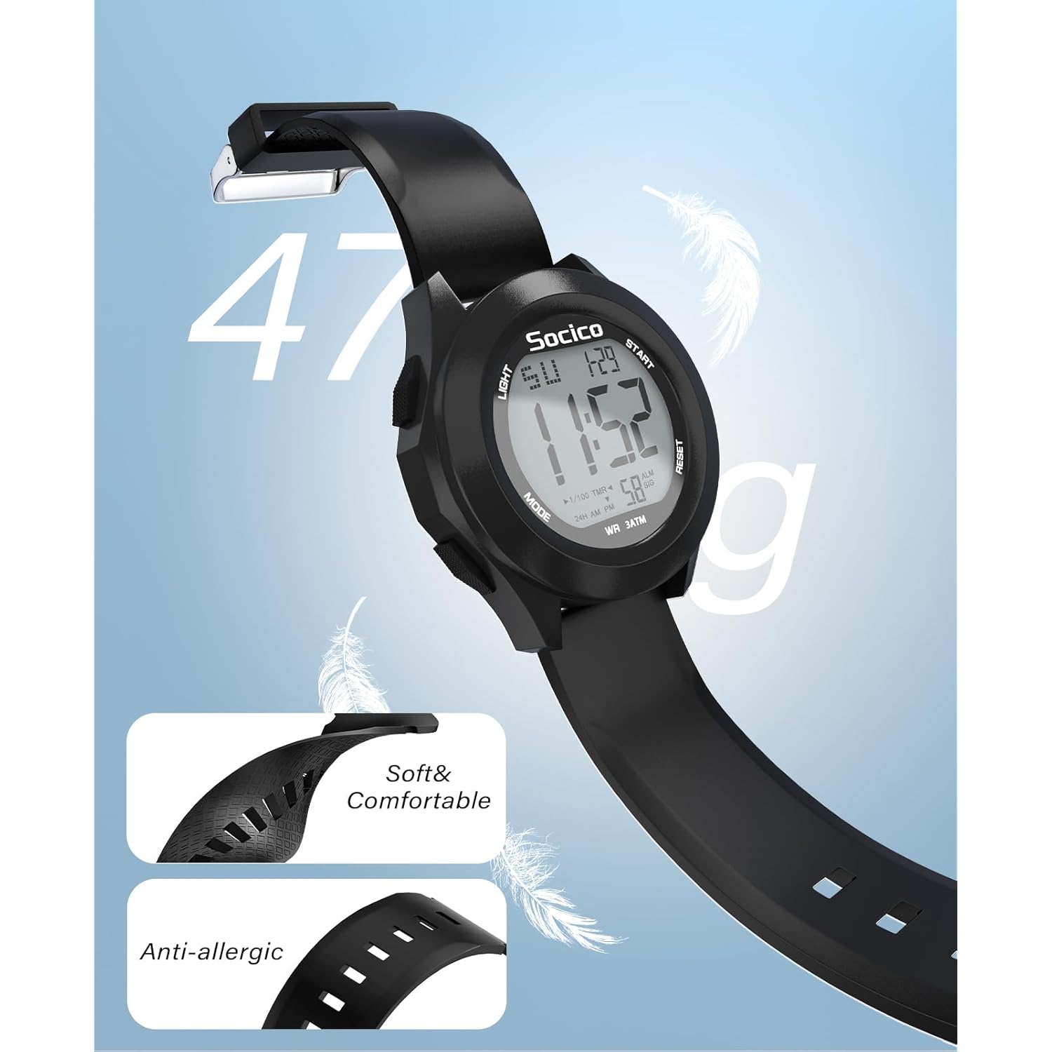 - Digital Display: Large face digital screen shows time, date, and multiple functions clearly, perfect for quick reading in any lighting condition