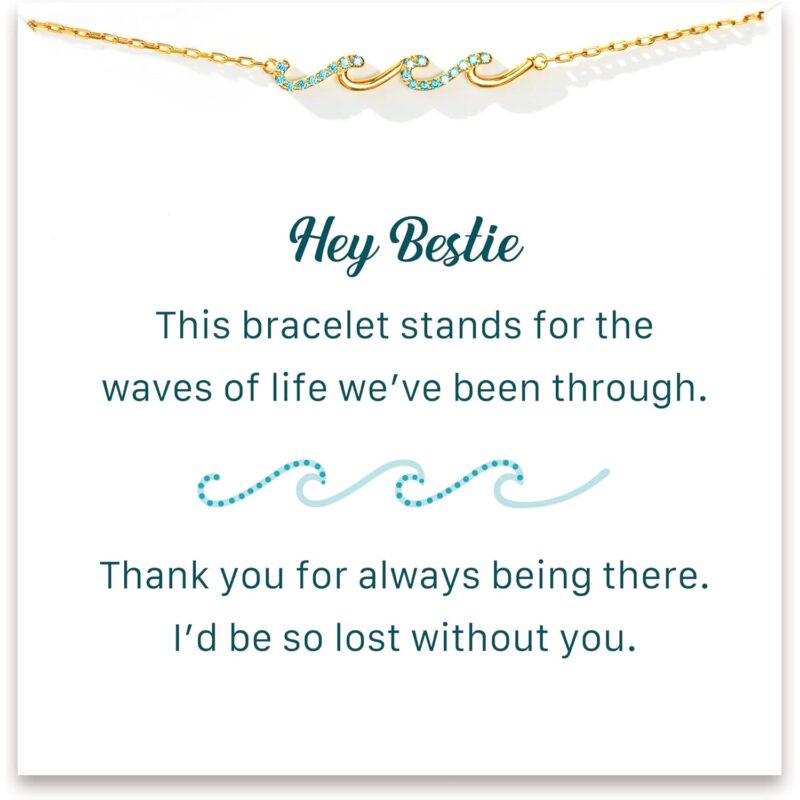 CARD MESSAGE: “Hey bestie This bracelet stands for the waves of life we’ve been through. Thank you for always being there. I’d be so lost without you.”
