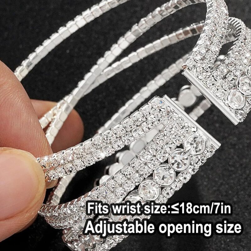 • Multi-layer Design: This silver rhinestone bracelet is stylish and elegant, suitable for all styles of clothing, you can wear it with dresses, shirts, casual wear, etc. The multi-layered design is brighter and more layered.