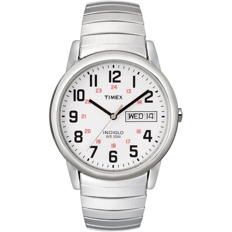 - White easy-to-read dial with day & date window at 3 o’clock; full Arabic numerals