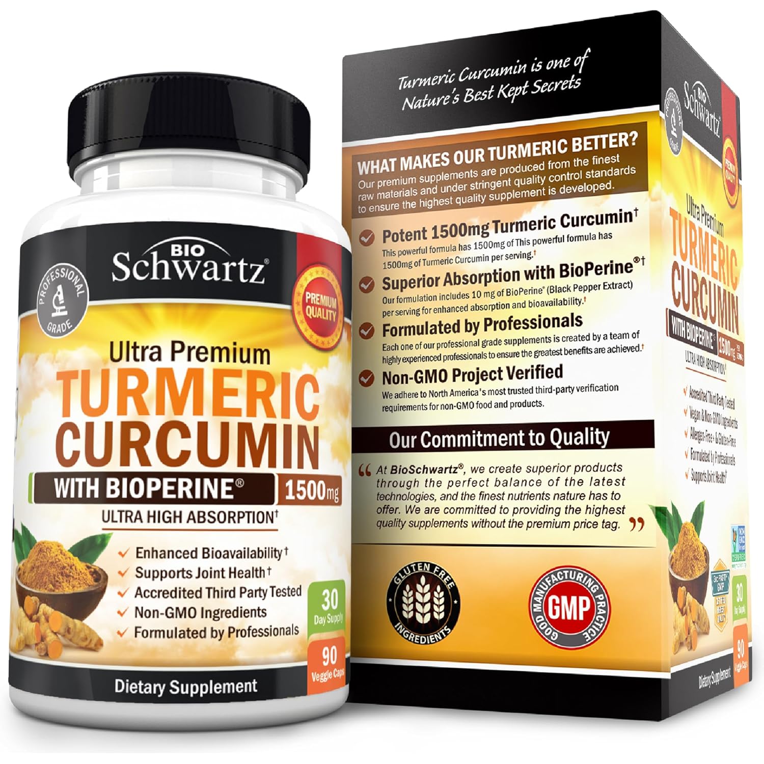 - Proven Benefits: Feel the synergistic relief of our turmeric black pepper supplement made with high strength turmeric curcumin 1500mg and BioPerine that may increase absorption by up to 2000%