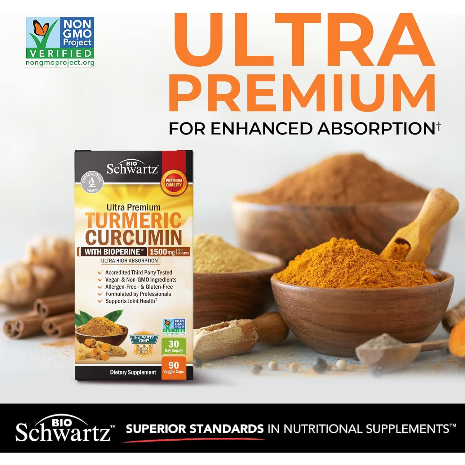 Turmeric Curcumin with Black Pepper Extract 1500mg – High Absorption Ultra Potent Turmeric Supplement with 95% Curcuminoids and BioPerine – Non GMO Tumeric Capsules for Joint Support – 90 Capsules
