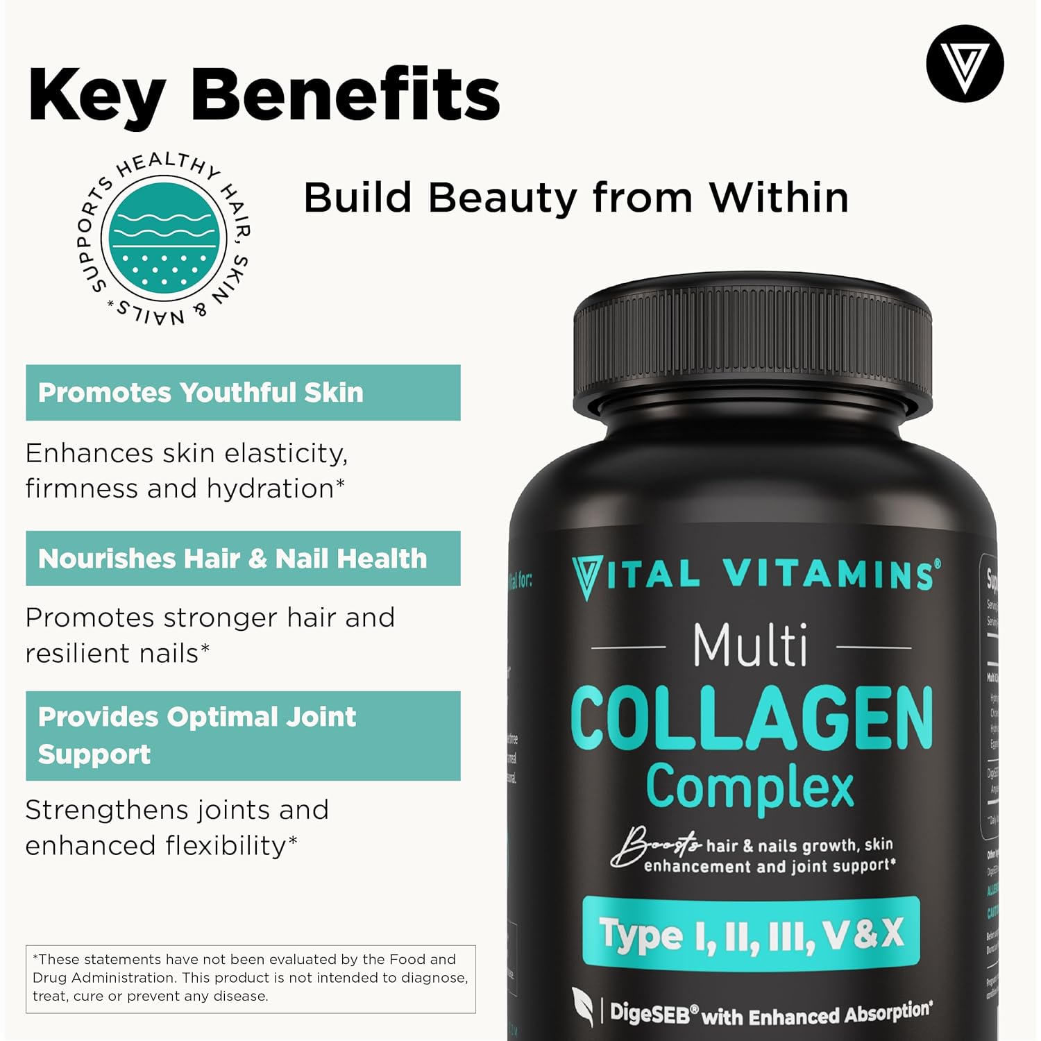 • Holistic Support: Elevate your wellness journey with our Multi Collagen Complex, a powerhouse of benefits for hair, skin, & nails. Crafted with precision, our non-GMO, hormone-free capsules are your go-to solution for supporting overall health.