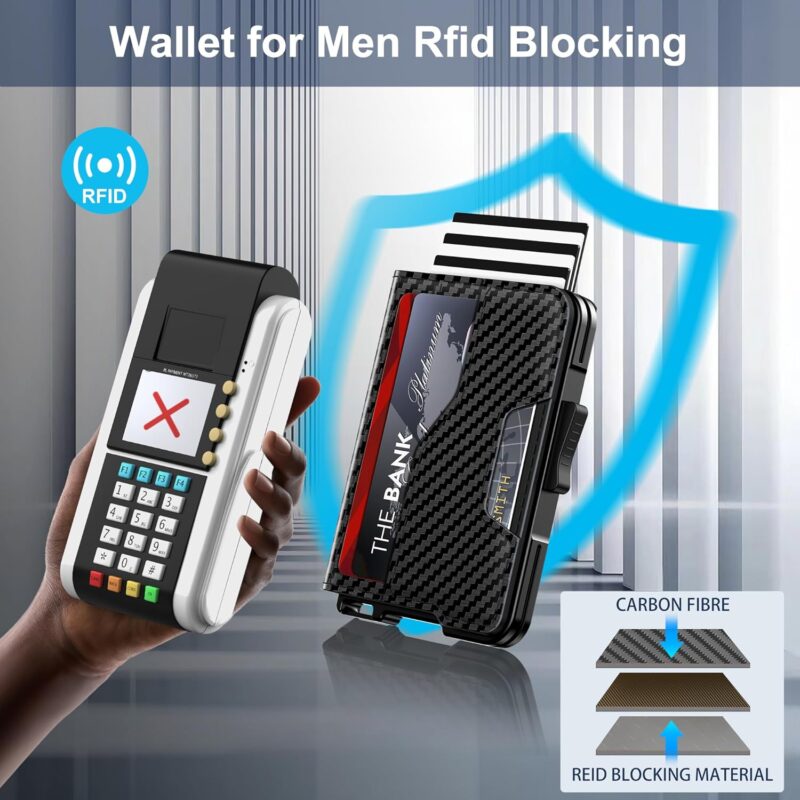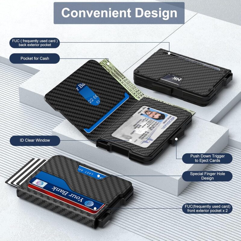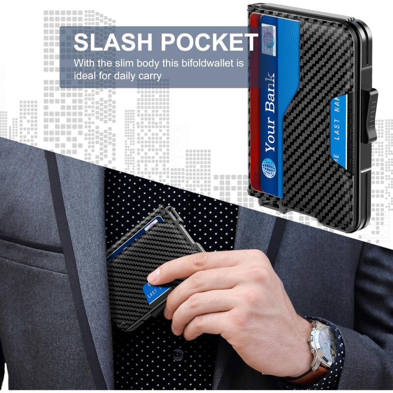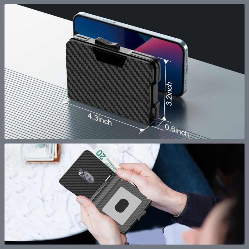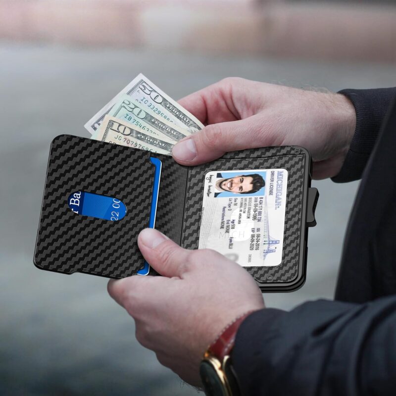 Wallet for Men – Pop Up Case, Cash Slot, and Credit Card Wallet – Slim Minimalist Aluminum Front Pocket Wallet with RFID Blocking/ID Window (Carbon Fiber)