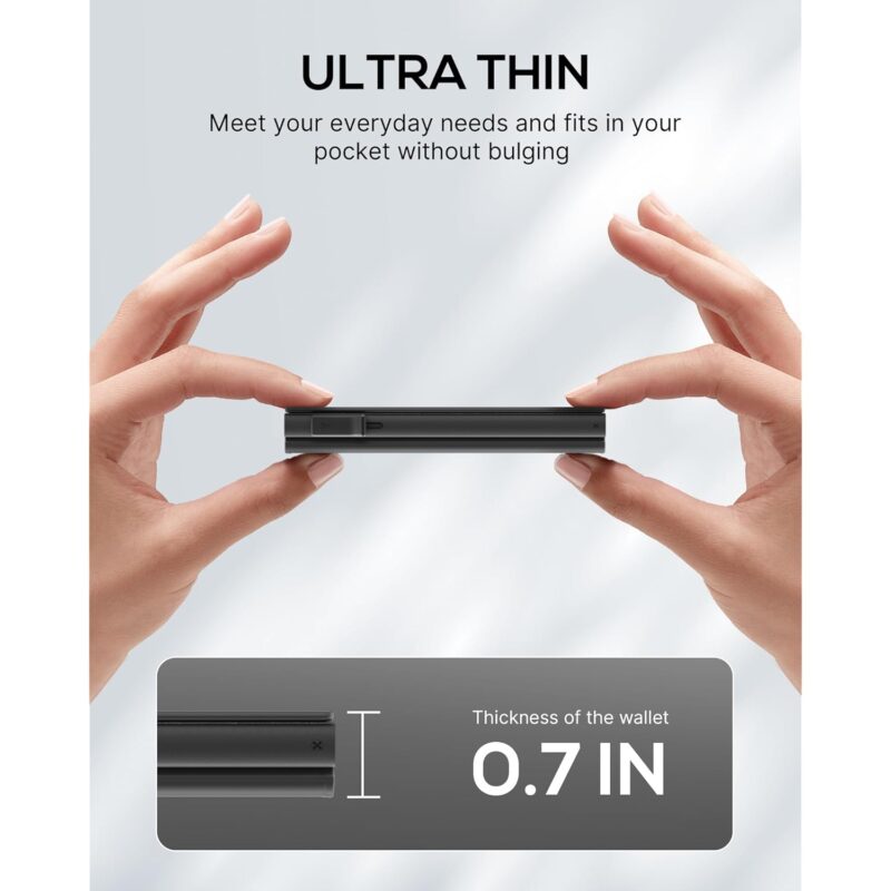 - ăCOMPACT AND CONVENIENTă The compact wallet has been meticulously designed to slip gracefully into any pocket. Its sleek dimensions, measuring 3.83 * 2.56 * 0.78 inches, mean it nestles snugly in your front pocket or slides effortlessly into any other, all while maintaining an air of comfortable sophistication.