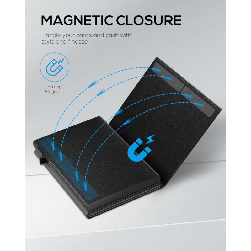 - ăSWIFT MAGNETIC CLOSUREă Experience the art of seamless elegance with cool wallet’s magnetic suction switch. Open and close your edc wallet with the kind of effortless grace that matches your lifestyle.