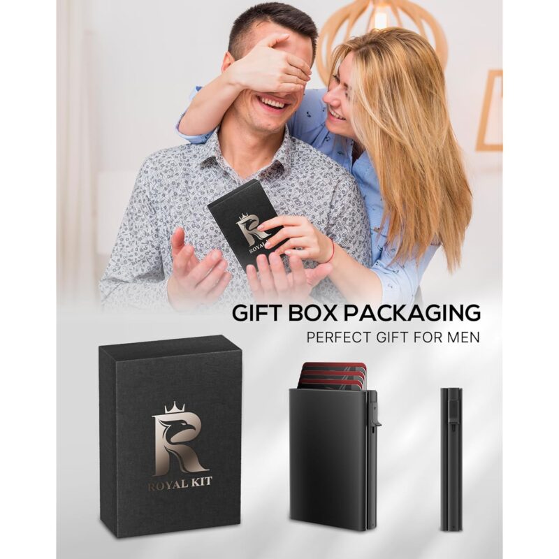 - ăPREMIUM MATERIAL COMPOSITIONă Elevate your style game with a metal wallet that’s not just practical, but also a statement piece. Meticulously crafted from the finest high-quality leather and robust 6063 T5 Aluminum, it’s a testament to both refined taste and lasting durability.