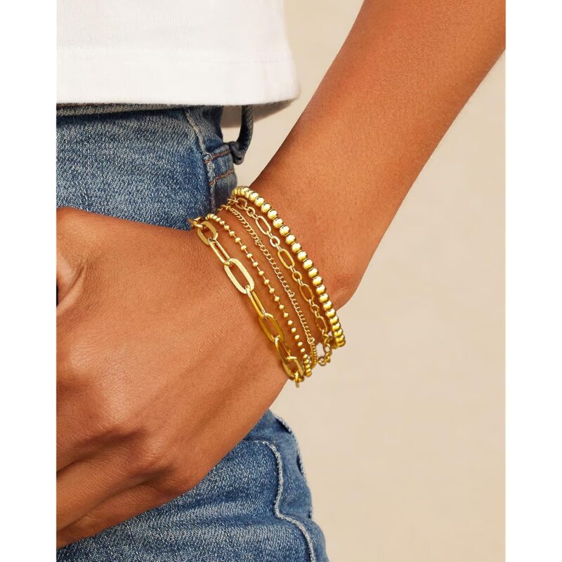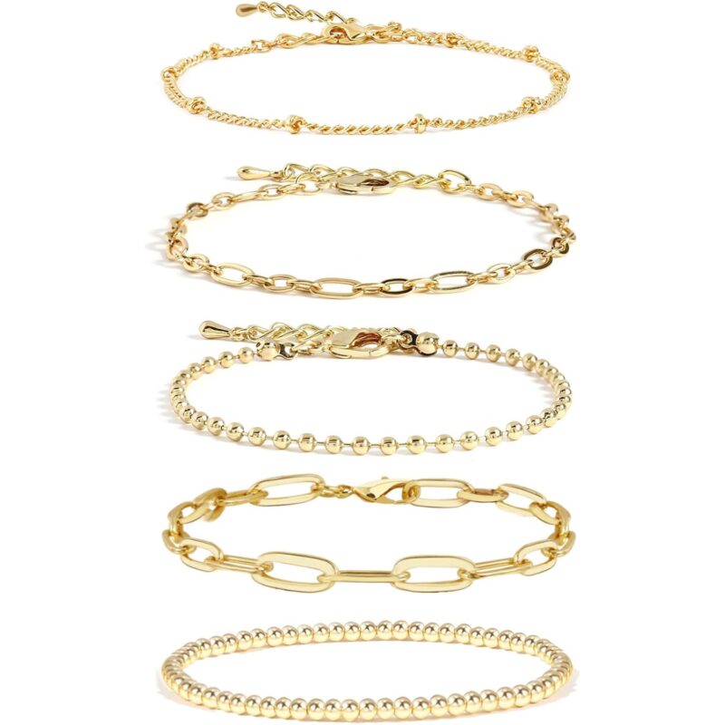 Waterproof Gold Chain Bracelet For Women Non Tarnish,14K Gold Plated Stainless Steel Link Dainty Bracelets Stake Layered Bracelet Set Hypoallergen Gold Jewelry
