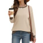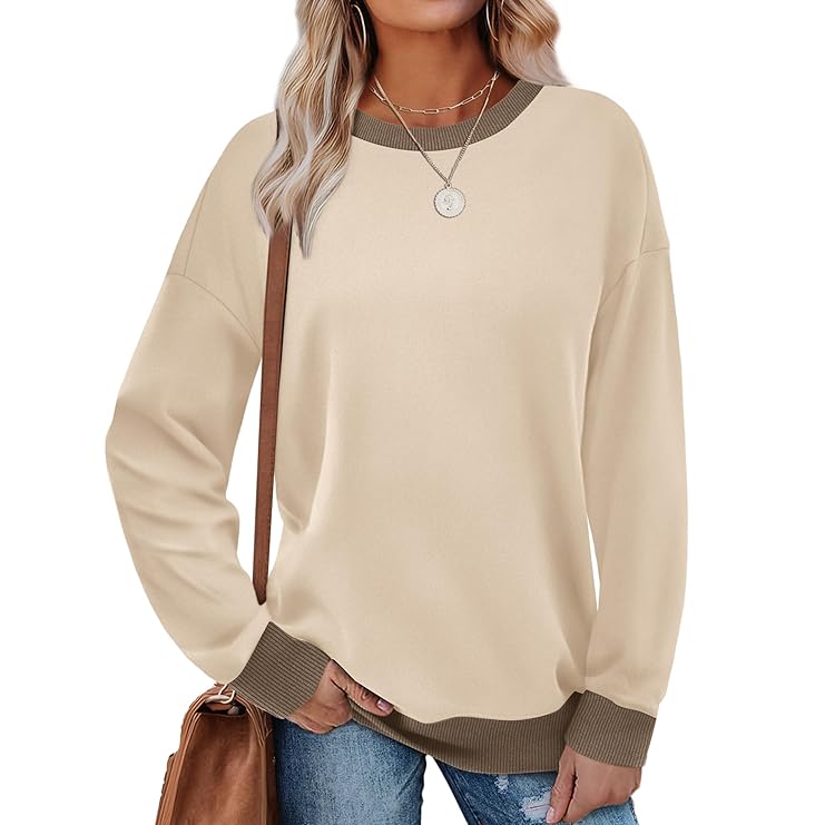 - ✦Unique Design: Color Block Ribbed Trim tops, crewneck sweatshirt loose fit, lightweight cozy sweaters, long sleeve comfy shirts. The contrasting trim makes it easy to show your unique personal fashion charm.