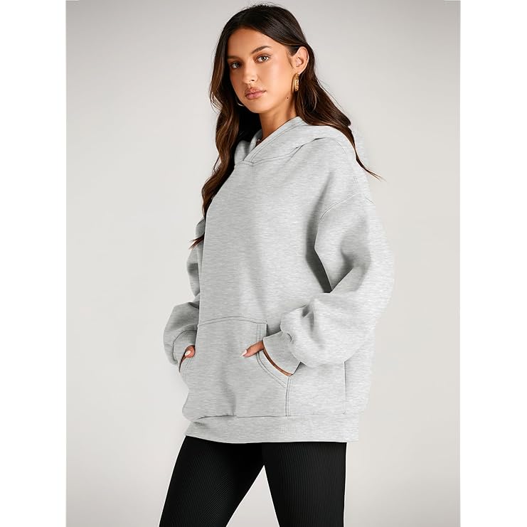 Women’s Oversized Fleece Hoodie Sweatshirt – Fall/Winter Pullover In Grey