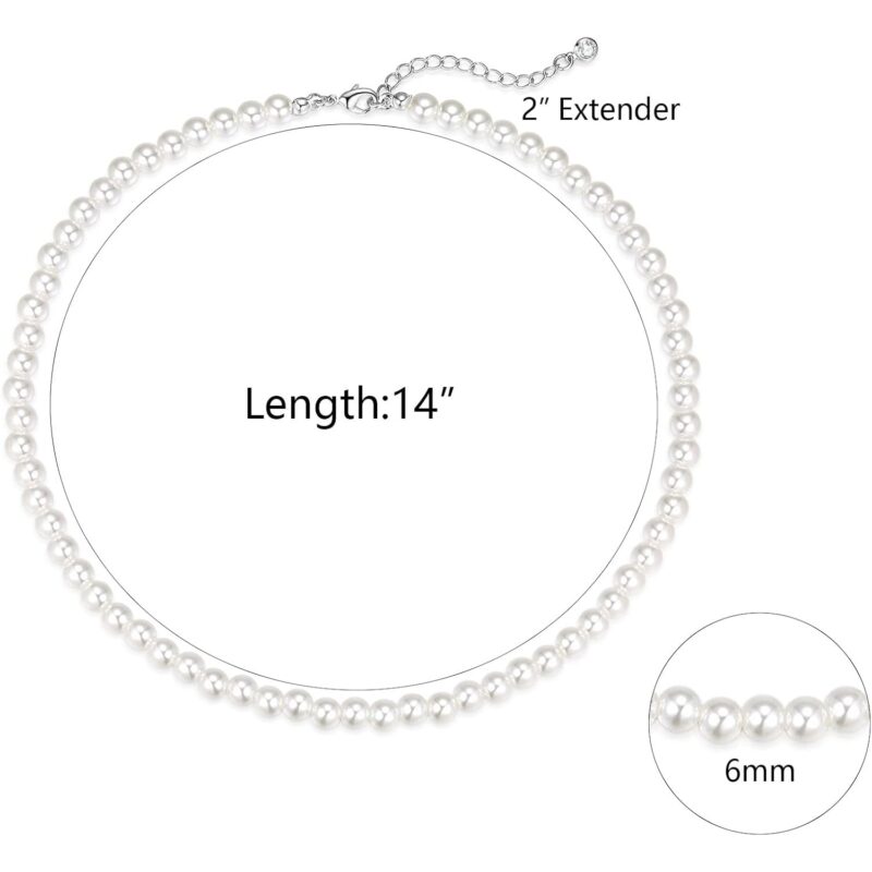 - ❤6MM Pearl Necklace Design❤: Our pearl necklace with 6mm diameter, length 14’’+2″ extender adjustable. The pearls represent noble and classic elegance, never outdated, it will match all your outlook. Pearl necklace suitable for men and women can be worn on any occasion.